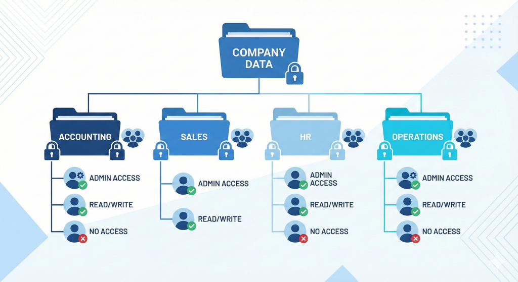 Không phải mọi nhân viên đều cần truy cập toàn bộ dữ liệu công ty. Khi phân quyền file server không rõ ràng, doanh nghiệp dễ gặp các vấn đề: