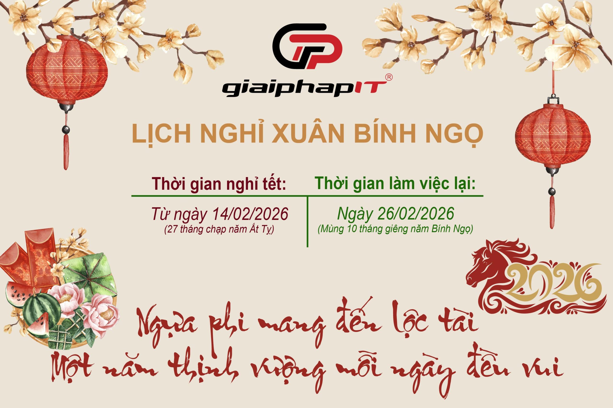 GPIT trân trọng thông báo lịch nghỉ Tết Bính Ngọ 2026 như sau:
